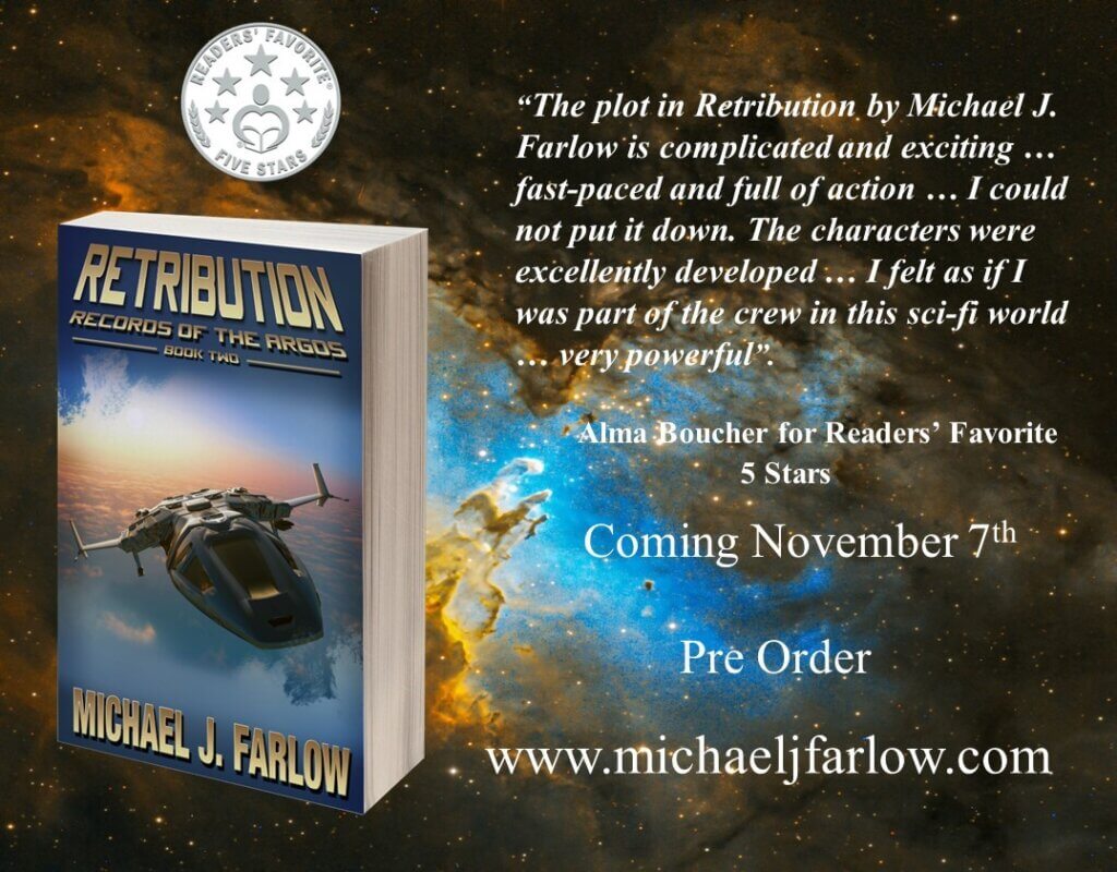 Things are moving along on schedule with the launch of Retribution on November 7. I have noted on several venues that the book can be pre-ordered now. One reader went online and found that refers only to the eBook. That is correct. Unlike past launches, Amazon has changed its procedures and no longer offers pre-orders for print books. I haven’t a clue why. About the only thing I can do is start the print book a little early so both are available on November 7th. Go with the flow, I guess.